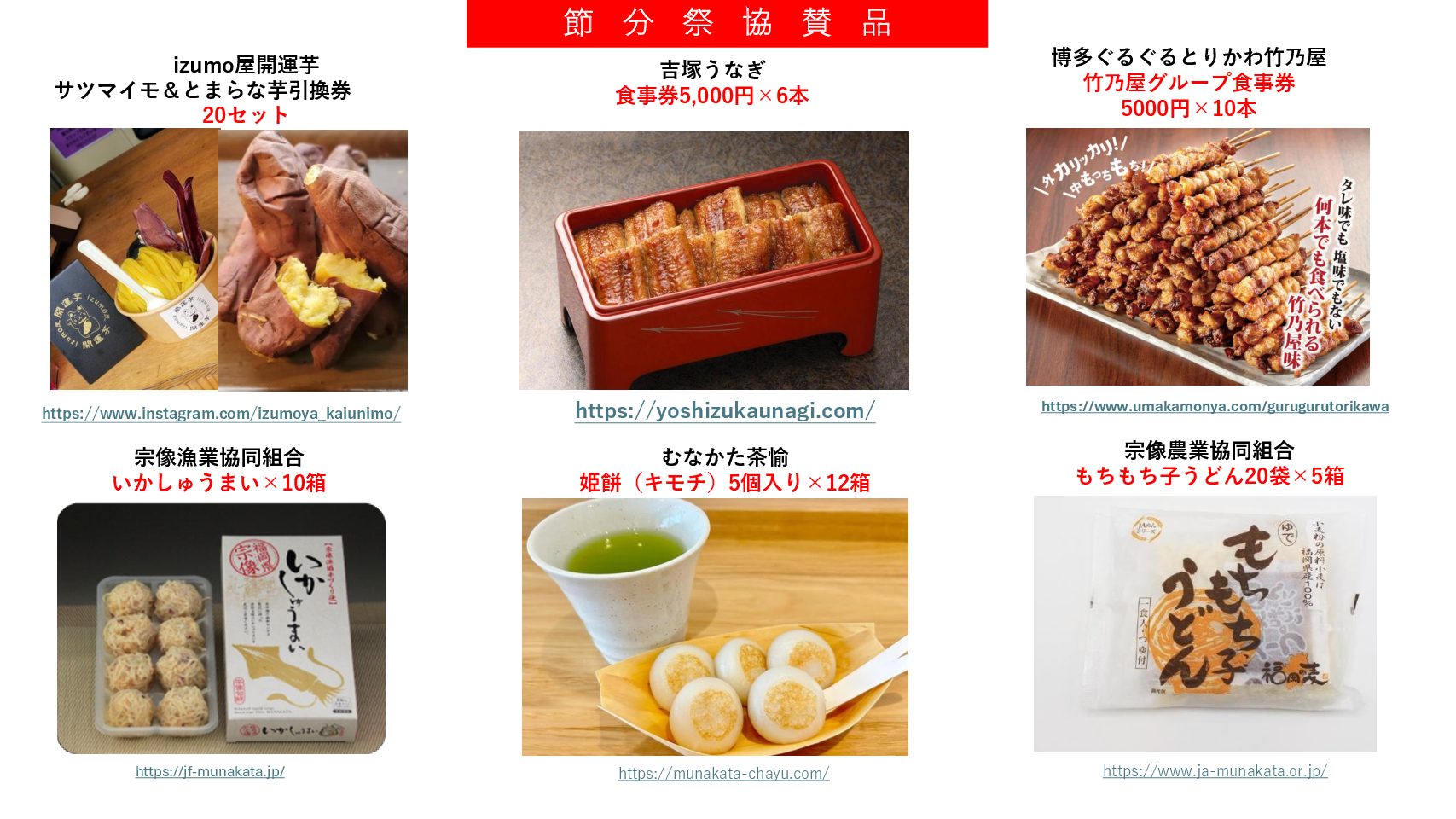 また、福豆・お菓子に加え協賛の品の当り件もございます。お揃いでのお参りをお待ち申し上げます。節分祭 協賛一覧